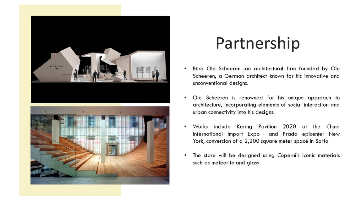 The Coperni retail expansion strategy envisions captivating pop-up experiences and a flagship store that transcend traditional retail boundaries. Through innovative concepts and an iconic Paris flagship, Coperni aims to extend its global presence while staying true to its futuristic brand identity. This strategic project aims to create immersive retail encounters that reflect Coperni's avant-garde spirit and resonate with fashion-forward individuals across the world.